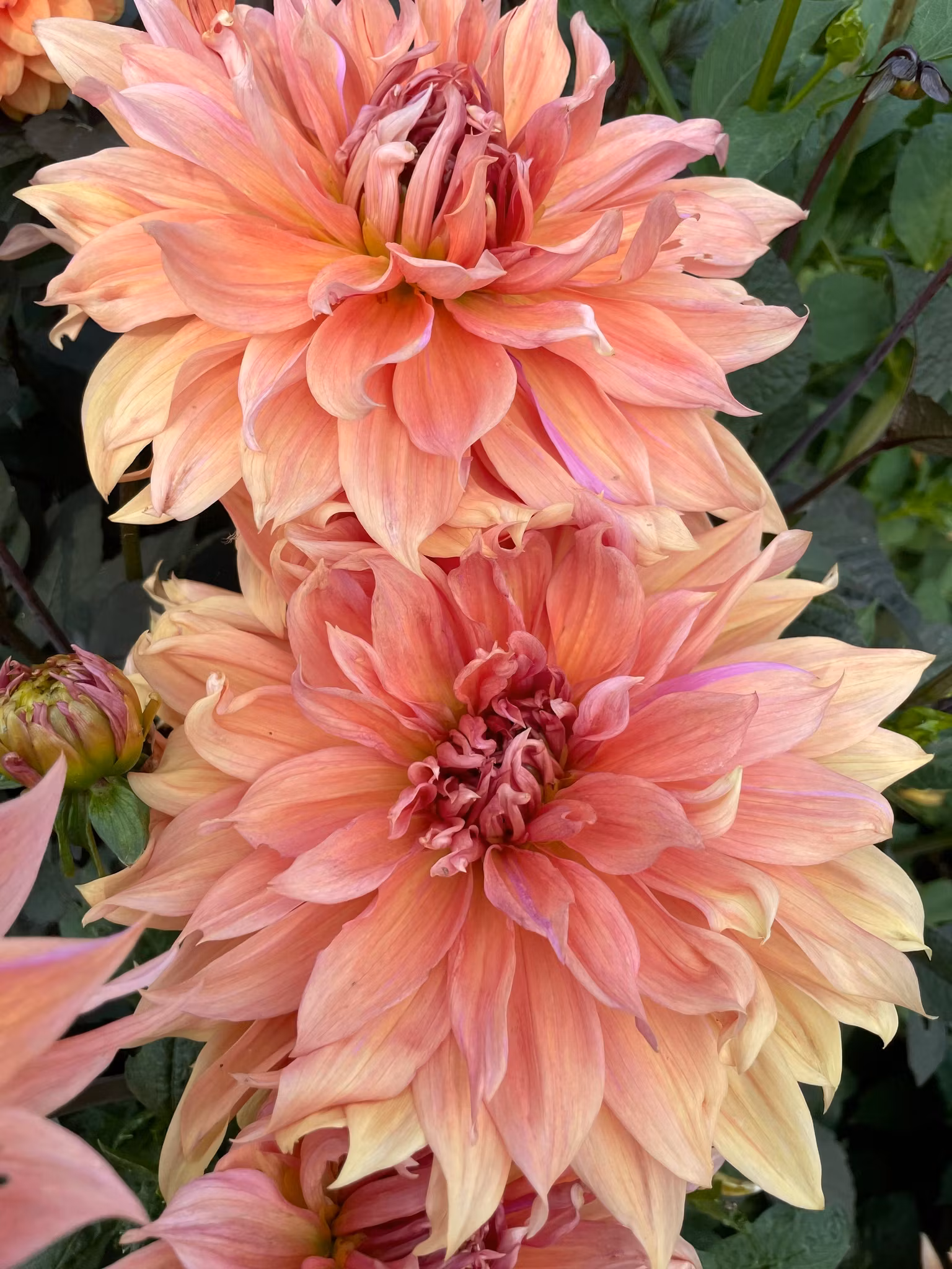 Spektakulär storblommig dekorativdahlia med upp till 20 cm stora aprikos/laxrosa iögonfallande blommor som bleknar med tiden. Bra och superfin till snitt om blomman skördas tidigt, nästan i knoppstadie. En mycket populär dahlia, inte så konstigt med sina tjusiga blommor.